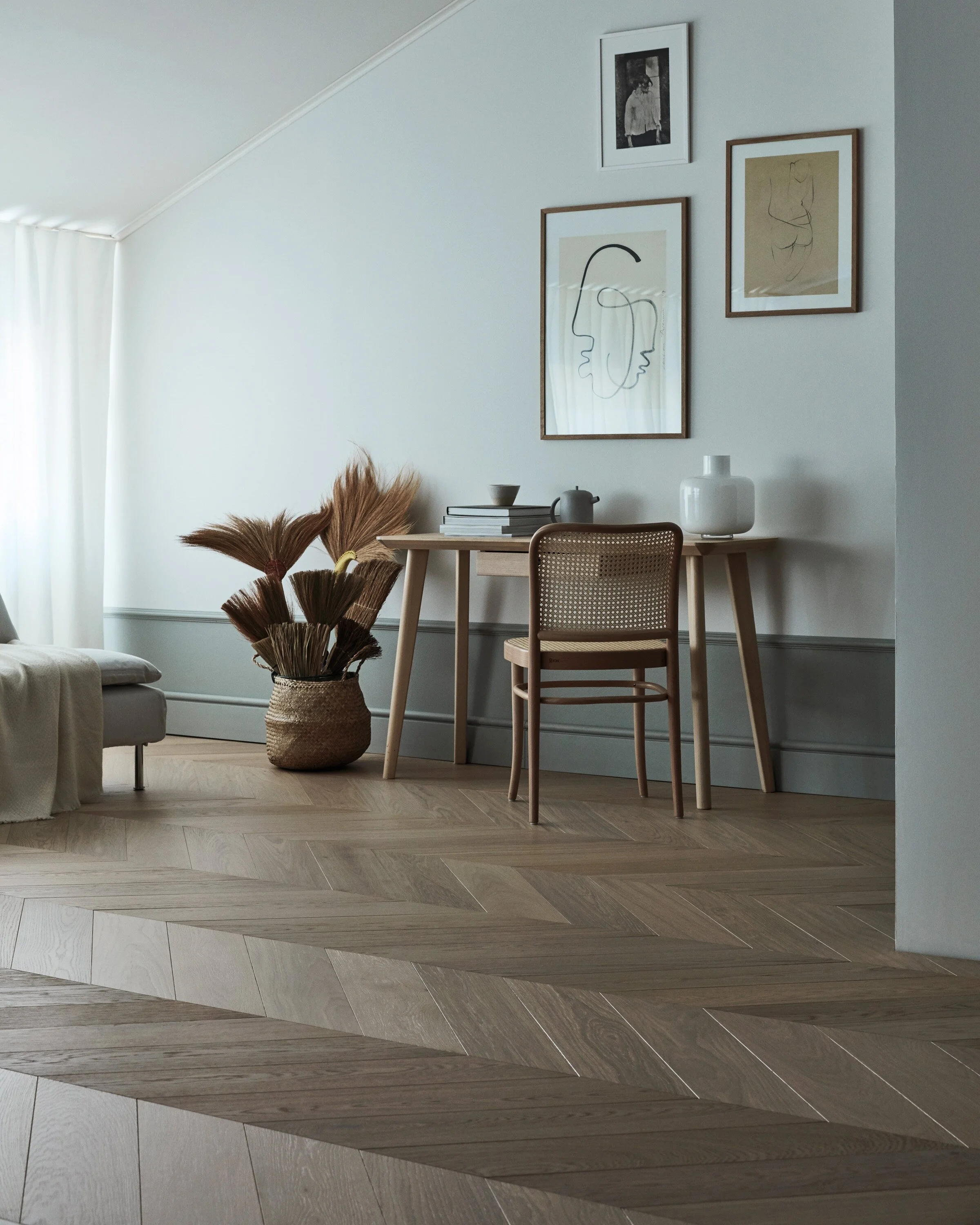 Gjør treoverflaten personlig og uttrykksfull samt forbedrer gulvets håldbarhet.